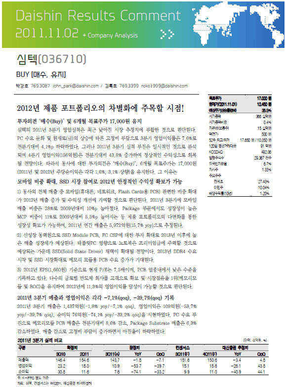 2012년 제품 포트폴리오의 차별화에 주목할 시점! - 대신증권