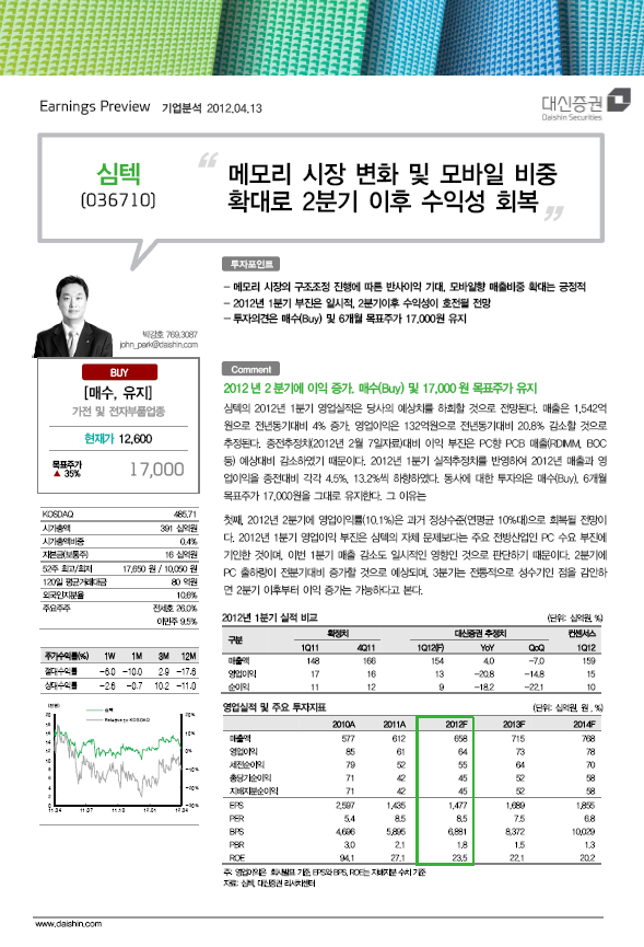 메모리 시장 변화 및 모바일 비중확대로 2분기 이후 수익성 회복 - 대신증권