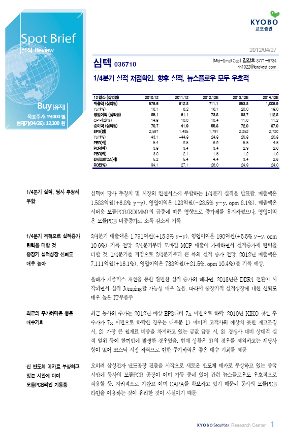 1/4분기 실적 저점확인. 향후 실적, 뉴스플로우 모두 우호적 - 교보증권