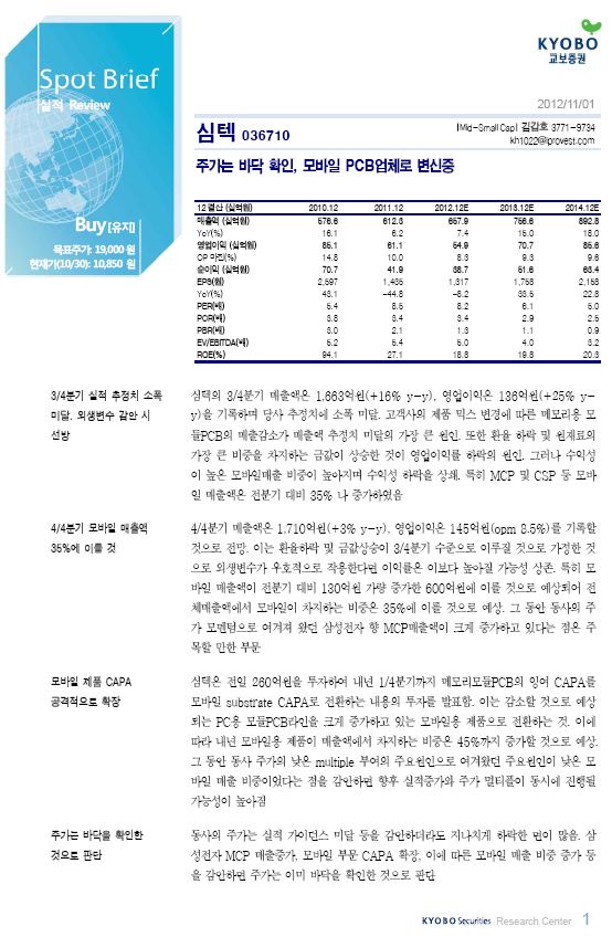 주가는 바닥 확인, 모바일 PCB업체로 변신중 - 교보증권