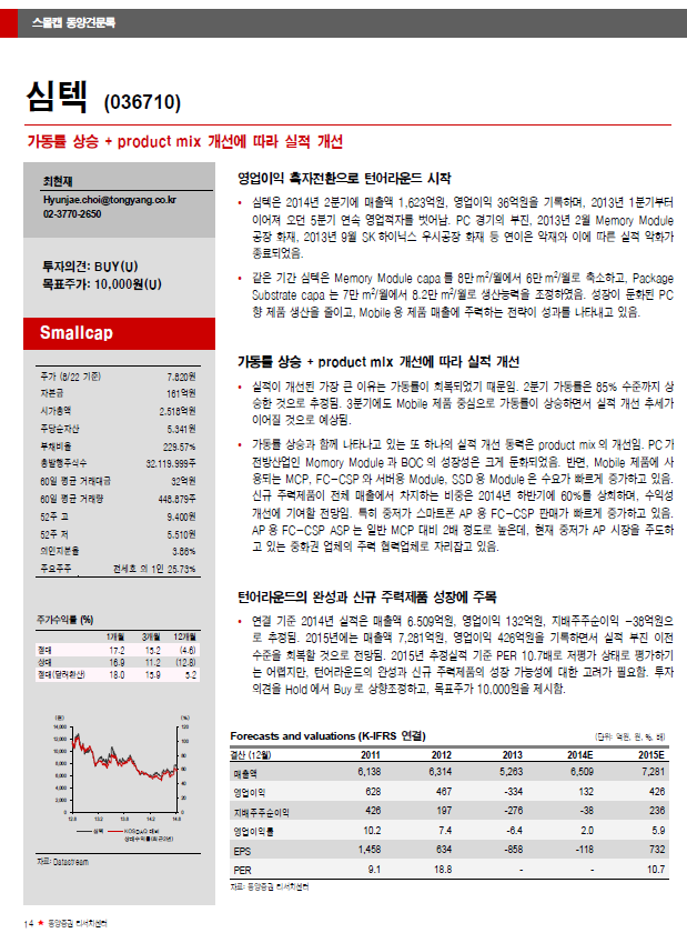 가동률 상승 + product mix 개선에 따라 실적 개선 - 동양증권