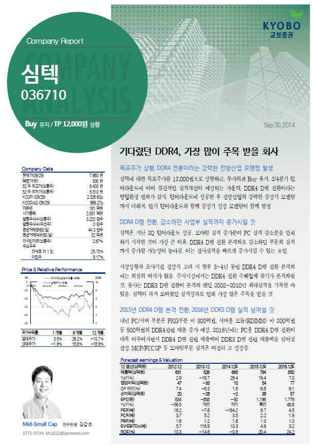 기다렸던 DDR4, 가장 많이 주목 받을 회사 -교보증권